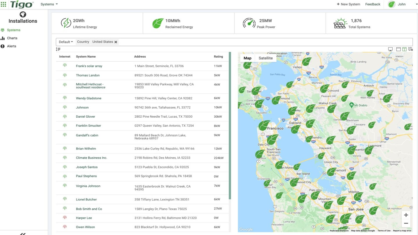 - You have fleet management: that's a view of all of your fleets – all of your different installations in one spot through one platform as long as it's connected with Tigo.