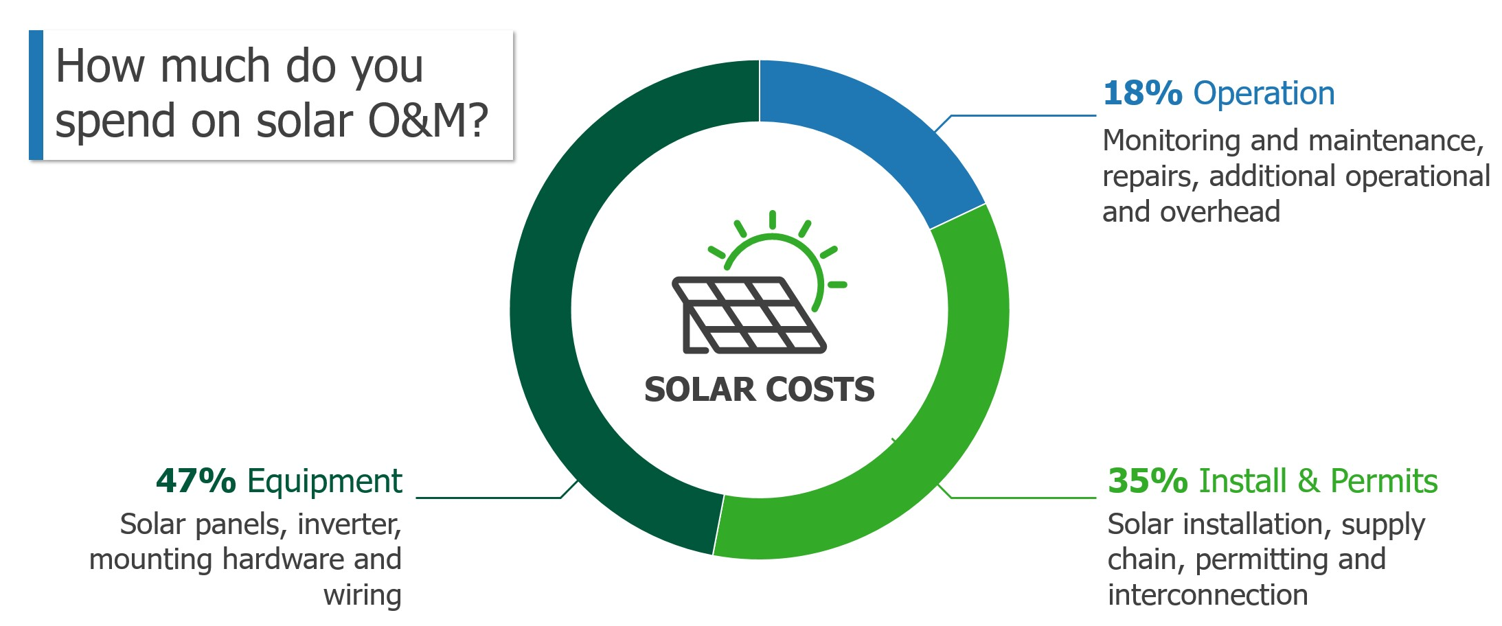 For starters, Figure 1 shows estimates from Sunrun 2021 so it’s very relevant nationwide and recent. Their estimate is that operation is approximately 18% of the cost of a solar installation. I know solar has amazing benefits over typically 25-year lifetimes and extremely low O&M costs. However, there are some; it's not purely putting the modules and everything up there and not worrying about a thing. The costs are fairly significant when you tally them up over that 25-year lifespan.