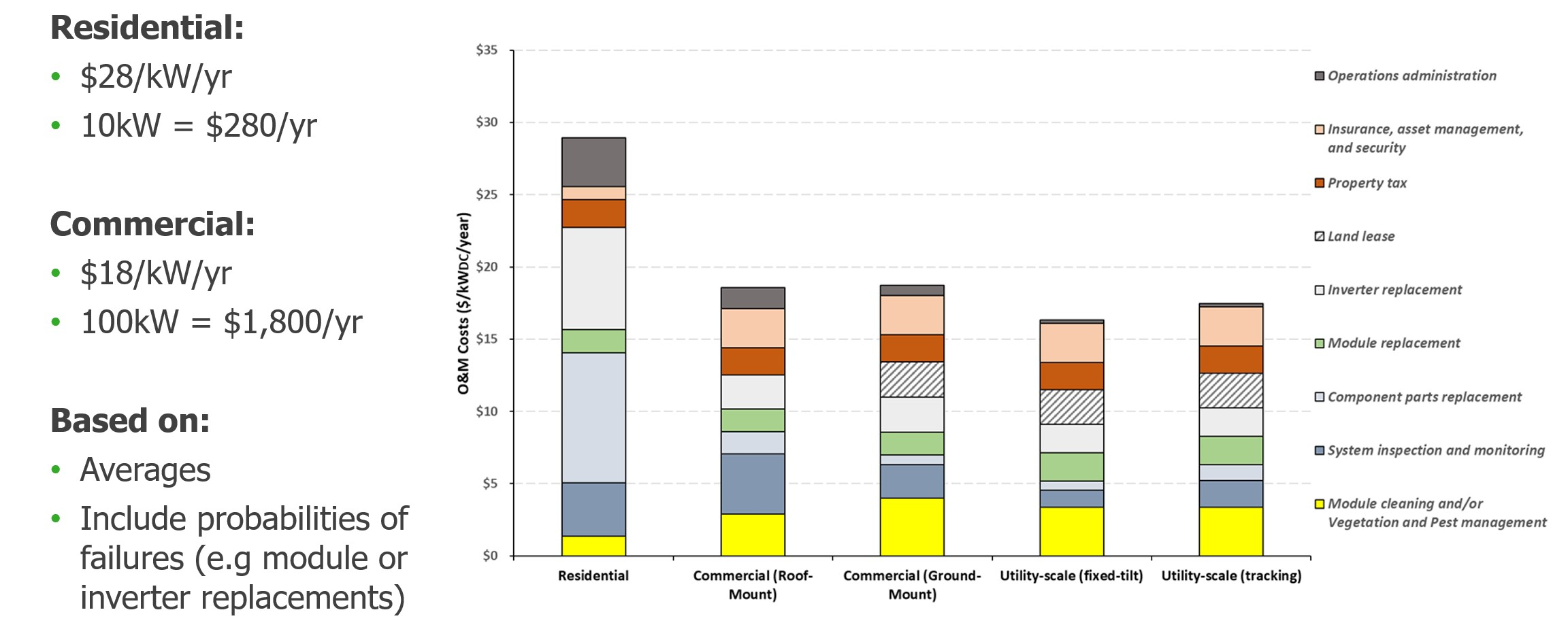 So residential costs I mentioned is around $28 per kilowatt per year. Commercial is less, at $18 per kilowatt per year. And what that means for a hundred-kilowatt site, so say a very large commercial rooftop, you're looking at around $1,800. So, it was still fairly significant. And again, I want to stress that doesn't mean that you're spending $1,800 a year. That means on average companies probably ought to be allocating that much because if a big inverter replacement or a big bunch of module repairs come, even if it's at year 10 or 15, those might all come at once. But that $1,800 is what it looks like when it's amortized across the entire life.