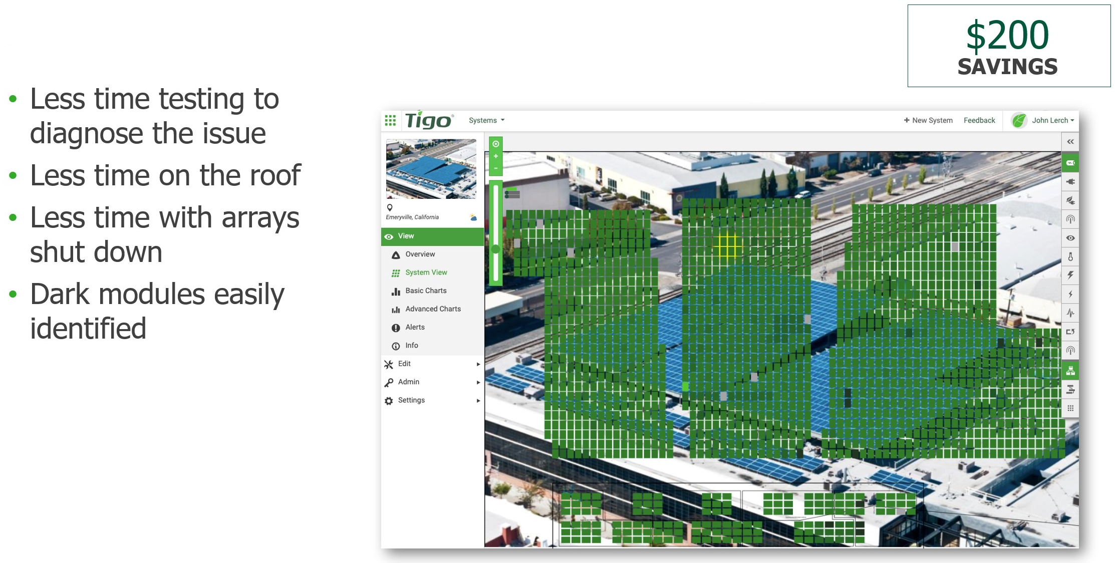 That means less time on the roof for your technicians, less time potentially having to shut down the array, which of course is costing your customers money, because you've been able to identify them super quickly. So, if your technicians can spend less time on the roof, we’ll ballpark that $200in savings.