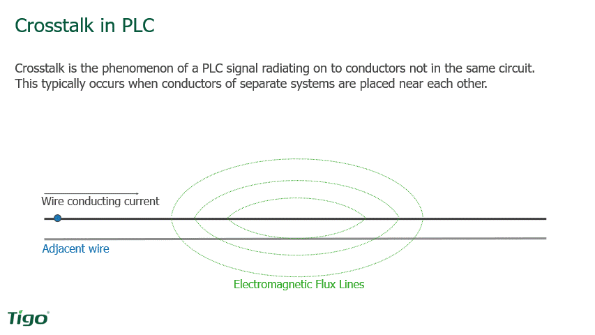 So, let's take a look at this communication method: power line communication. It is a low-cost solution, especially when you have an inverter with all of this stuff built into it. However, it is sensitive to interference. And then we get this cross modulation, which everybody is more familiar with the term “cross talk”, that can interfere with signal integrity. That's really what we want to do. We want to make sure that the signal from that RSS transmitter running through those lines is as strong and as undisturbed as possible.