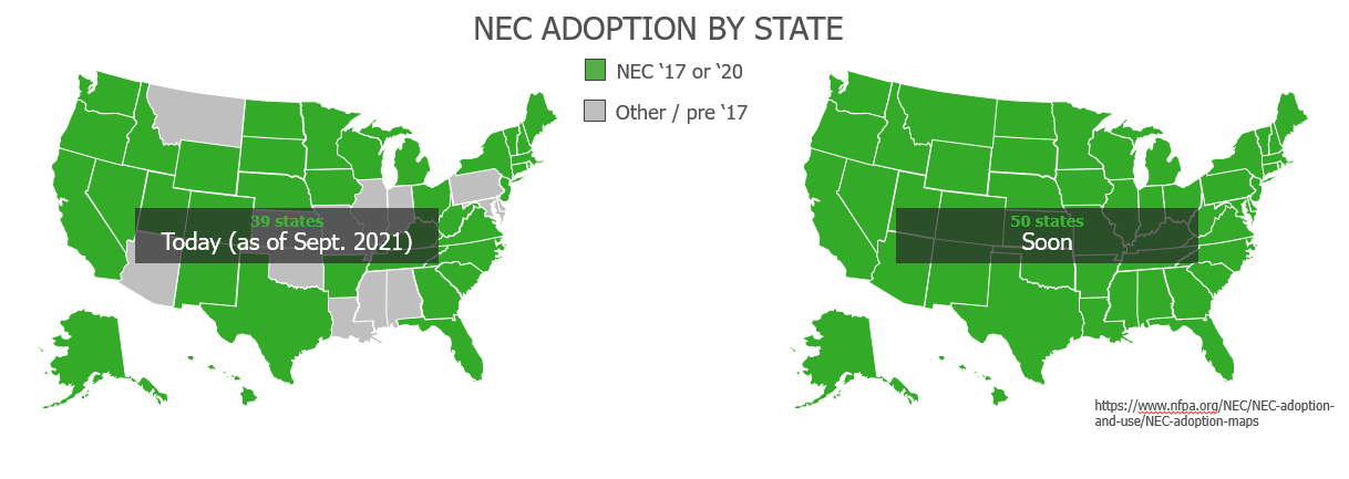 Now most of the United States was on NEC 2017 or 2020 code cycle, but as you can see in Figure 1, there are some holdouts. However, pretty soon everybody is going to be under this umbrella. So, we're going to have everybody comply with these safety requirements, they’re important.