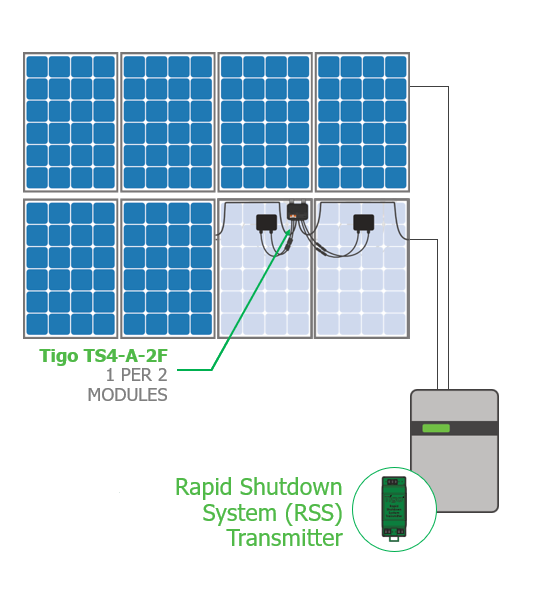 The Tigo Enhanced inverters have this rapid shutdown system, or our RSS transmitter, built into it. I've got 16 TS4 on my roof, I got a Sunny Boy 5,000 TLUS, and that Sunny Boy has this RSS built into it. So, we go to great lengths to make this as easy as possible.