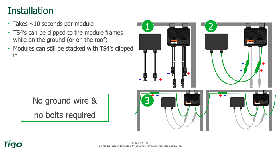 You don't need any other grounding wire for that. The TS4-2F, as you see in Figure 3, takes two modules into one MLPE. So, we're doubling up, but they both worked the same way. They still use PLC. You're just reducing the number of components up on the roof.
