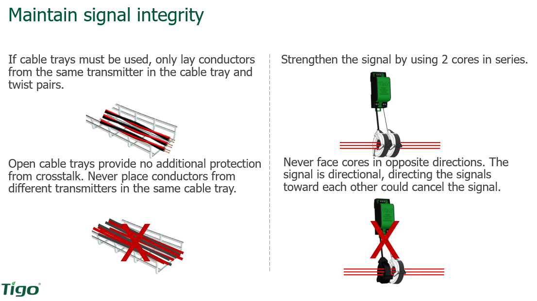 Again, don't place conductors from different transmitters in the same cable tray because they're just going to cancel each other out.