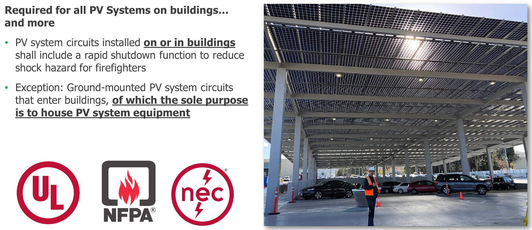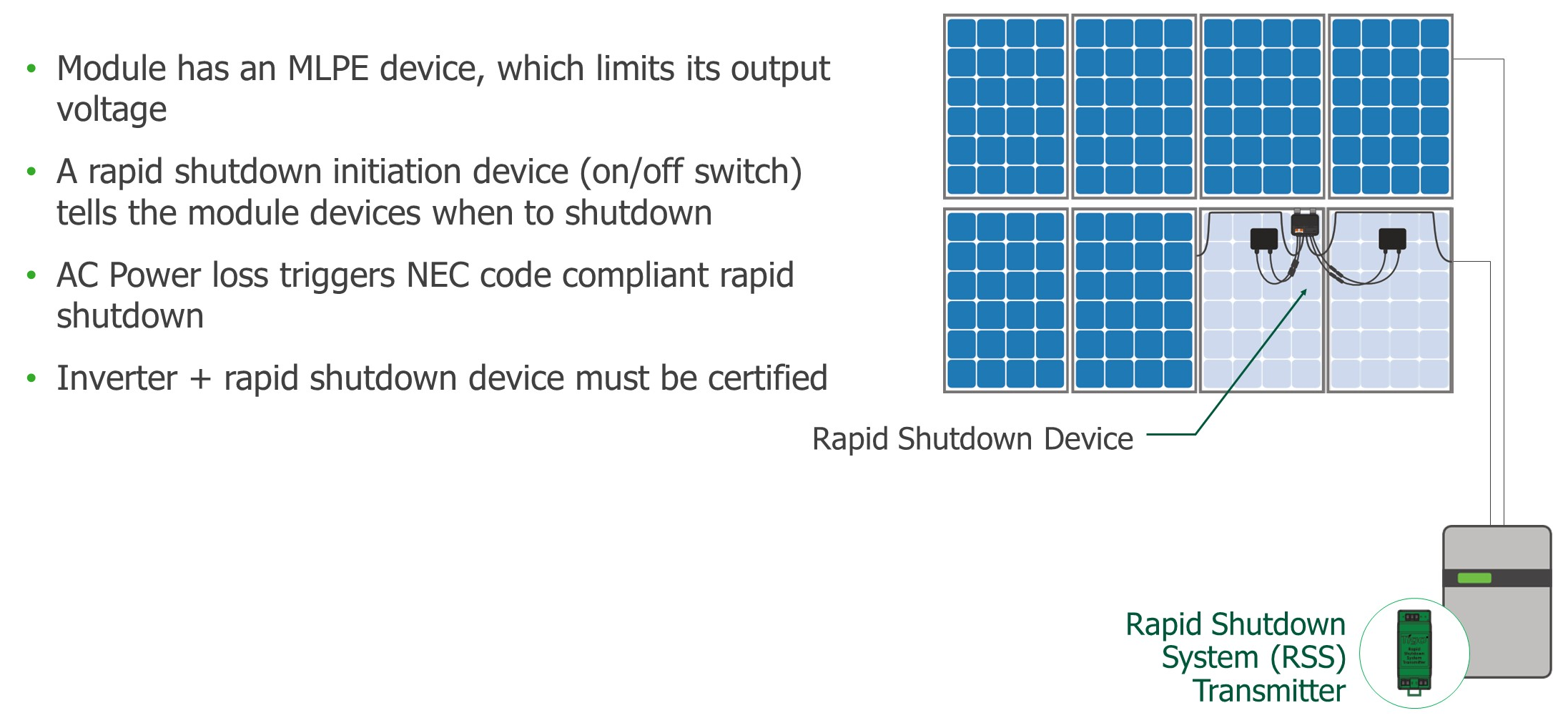Rapid shutdown is for the safety of first responders or anyone else who has to work around or near the [solar PV] system. The goal is to prevent people from being exposed to high voltage.