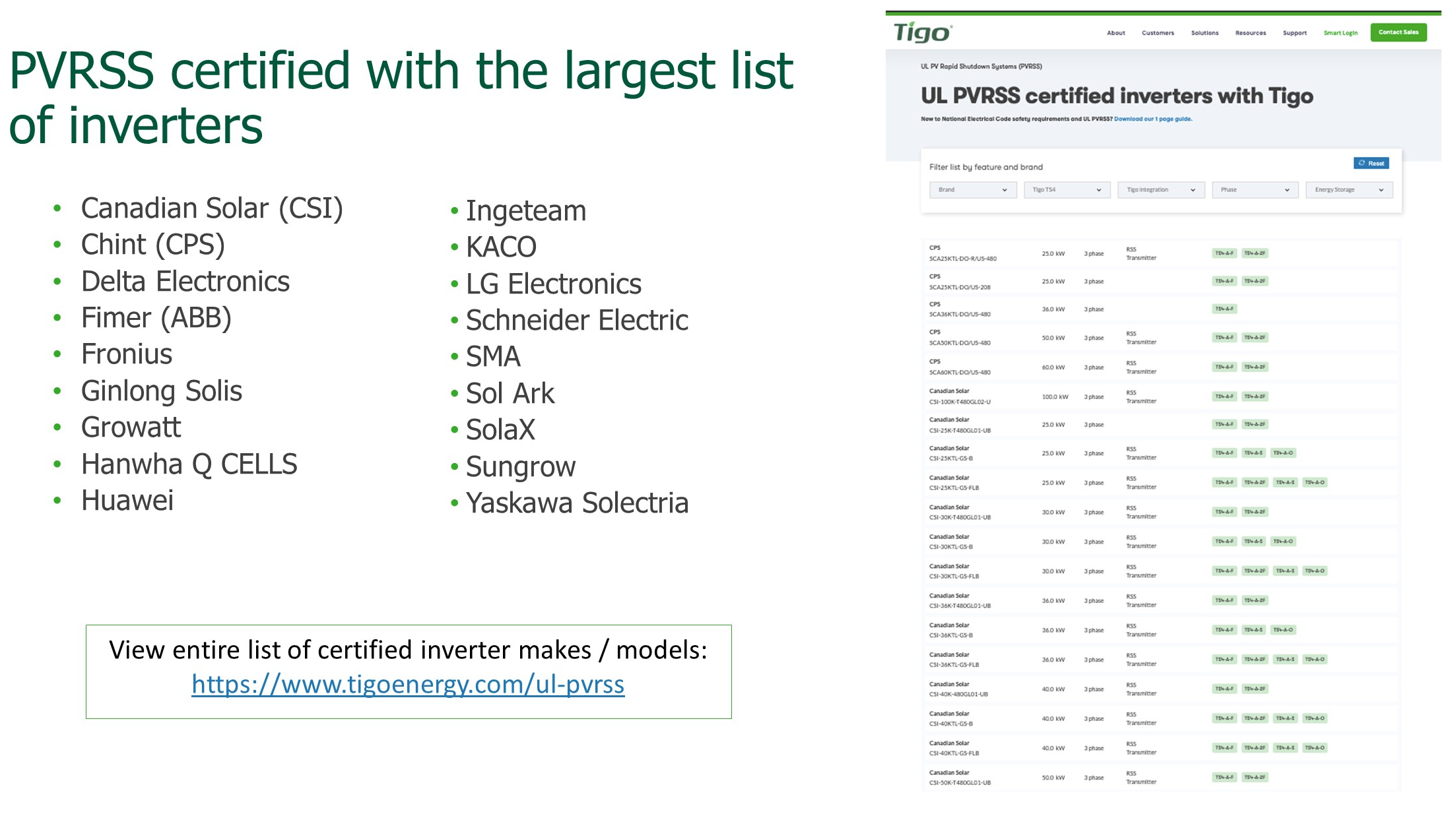 And this is the list that I strongly encourage everyone to check out and look at first when you're designing the system so that you know, if you're planning to use Tigo, which inverters you can use.