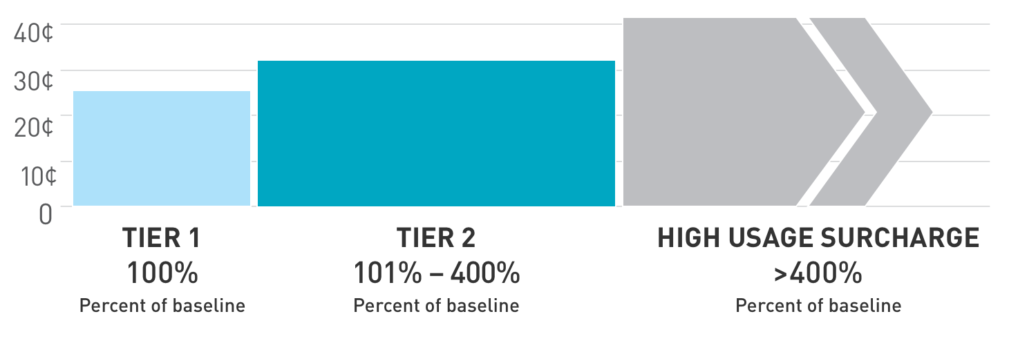 Tiered rates plans are a structure in which the more electricity you use, the higher your rates get. In each tier, you are allowed a certain amount of power in kilowatt hours (kWh). Once you exceed the amount in the tier, you will move into the next highest tier and so forth. Solar can offset the high $/kWh costs and potentially keep you in a lower cost tier by producing your own energy allowing you to pull less energy from the grid.