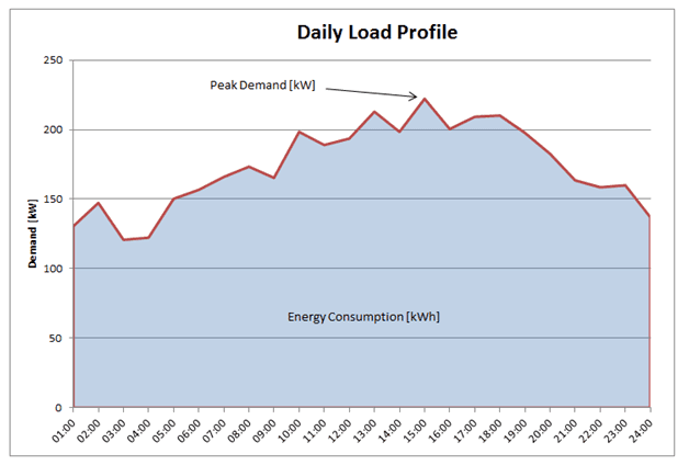 Demand charges add complexity to electricity plans. To put it simply, you are paying for the cost it takes for the utility company to maintain and supply your building with electricity in addition to your typical energy usage costs. To know how demand charges are calculated, you need to know what demand is. In this case, demand is the maximum amount of power you consume in a given period of time, usually measured in 15-minute intervals, within the month. This is also known as peak demand in the industry which is measured in kilowatts (kW) and is shown in Figure 3.