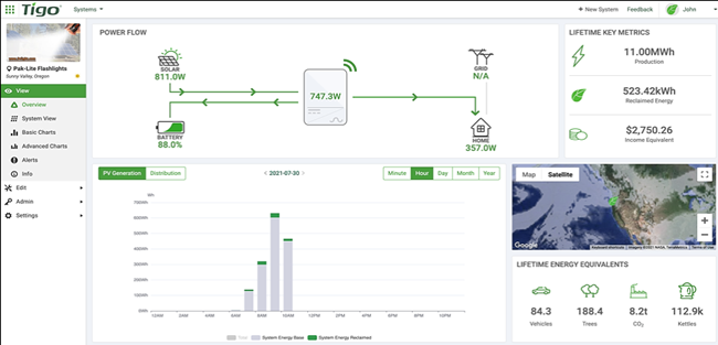 If you look at the bar chart in the demo or in Figure 3, the green tips are Reclaimed Energy that is enabled by Tigo optimizers. Tigo is the only major MLPE provider that shows customers the additional electricity that is enabled by its optimization technology.