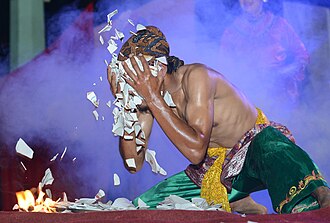 Bahasa Indonesia: Pertunjukan "Tari Piring" dari Pulau Sumatra (Indonesia) yang mungkin termasuk menari di atas piring pecah dan 'mencuci muka' dengan pecahan piring. Čeština: Tradiční představení Tari Piring (tanec na rozbitých talířích) severní sumatérské kultury (Indonésie), které zahrnuje tanec i manipulaci s rozbitými talíři. Tanečníci zde často demonstrují prstovou obratnost a divadelní prvky, spojené někdy s "umytím obličeje" kousky talířů jako symbol očištění – nebo jiné kulturní interpretace těchto praktik. Tari Piring je udržován jako součást živých kulturních tradic, zejména při festivalech a oslavách. Deutsch: Der Tari Piring ist ein Tanz aus Sumatra, bei dem die Tänzer Teller in den Händen halten, über Scherben laufen oder sich mit den Bruchstücken das Gesicht waschen. English: "Plate Dance" (Tari Piring) performance from Sumatra (Indonesia) that may include dancing on broken plates and 'face washing' with plate shards. Español: Tari Piring (danza del plato) es una danza tradicional indonesia originaria de la isla de Sumatra, que puede incluir bailar sobre platos rotos y 'lavarse' la cara con los fragmentos de platos rotos. Euskara: "Plater Dantza" (Tari Piring) ikuskizuna, non dantzariak kristalaren gainean egiten duen dantza eta platerak hausten dituen bere aurpegiaren kontra. Magyar: „Tányértánc” (Tari Piring) előadás, amelyben a táncosok törött üvegeken táncolnak és tányérokat törnek össze az arcukon Nederlands: “Tari Piring” is een traditionele dans van de Minangkabau uit Sumatra (Indonesië) waarbij op gebroken borden wordt gedanst en gezichten worden gewassen met scherven van borden. Português: Tari Piring (dança do prato) é uma dança tradicional indonésia originária da ilha de Sumatra, que pode incluir dançar sobre pratos quebrados e “lavar” o rosto com os fragmentos dos pratos quebrados. Македонски: Миење со скршени чинии — обред во Суматра, Индонезија. Русский: "Танец на тарелках" (Tari Piring) представление с острова Суматра, Индонезия, которое может включать в себя танцы на разбитых тарелках и «омовение лица» осколками тарелок. Українська: Вистава «Танець на тарілках» (Тарі Пірінг), яка може включати танці на розбитих тарілках та «омивання обличчя» осколками тарілок, Суматра, Індонезія. |