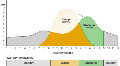 Batteries offset peak energy rates. With the utilities offering little incentive for net energy sent to the grid, batteries can charge during this period, then discharge the energy during the expensive on peak hours.